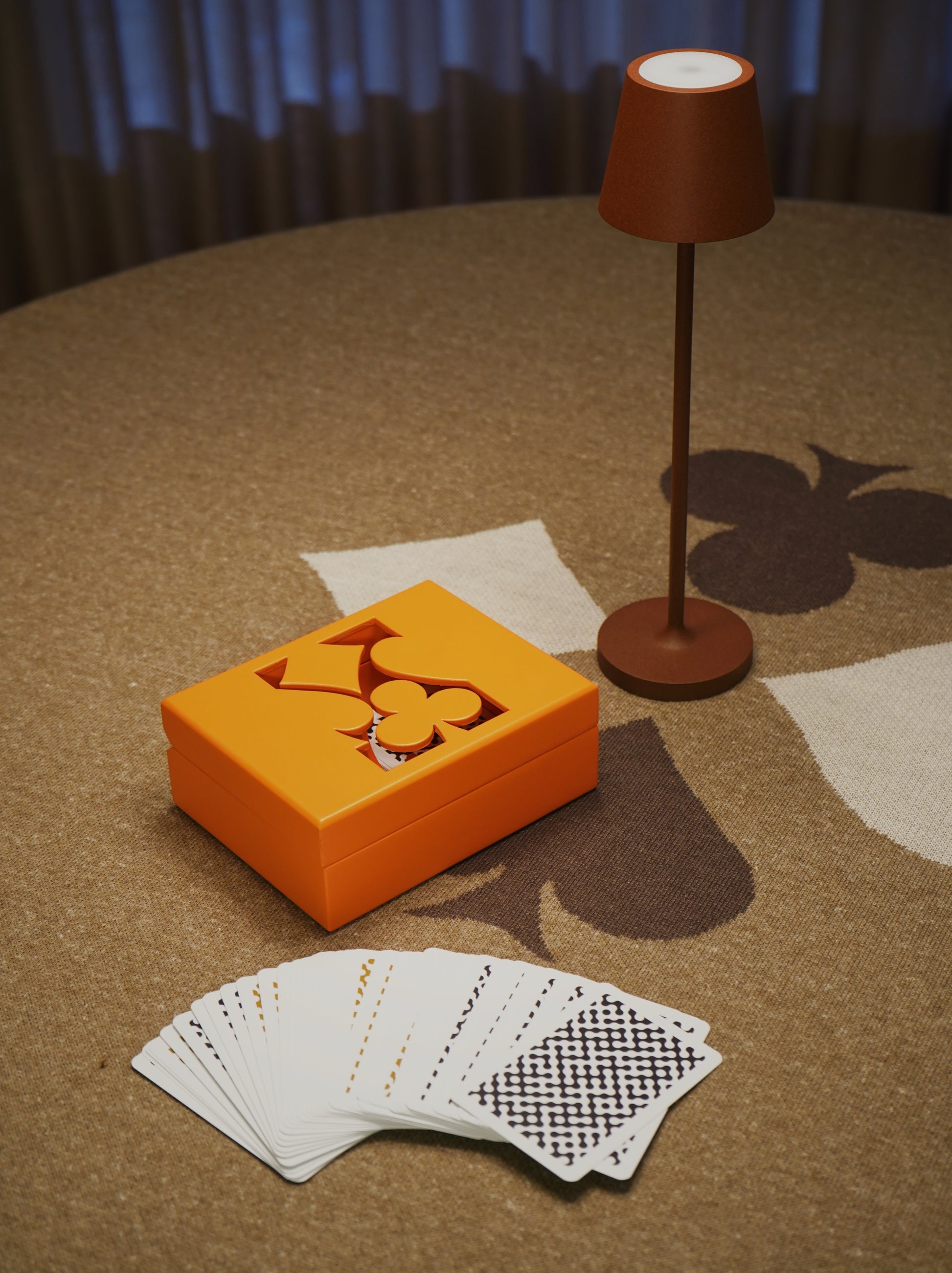 Seu design compacto e sofisticado combina com diferentes ambientes e decorações, mantendo os baralhos sempre à mão e bem guardados.