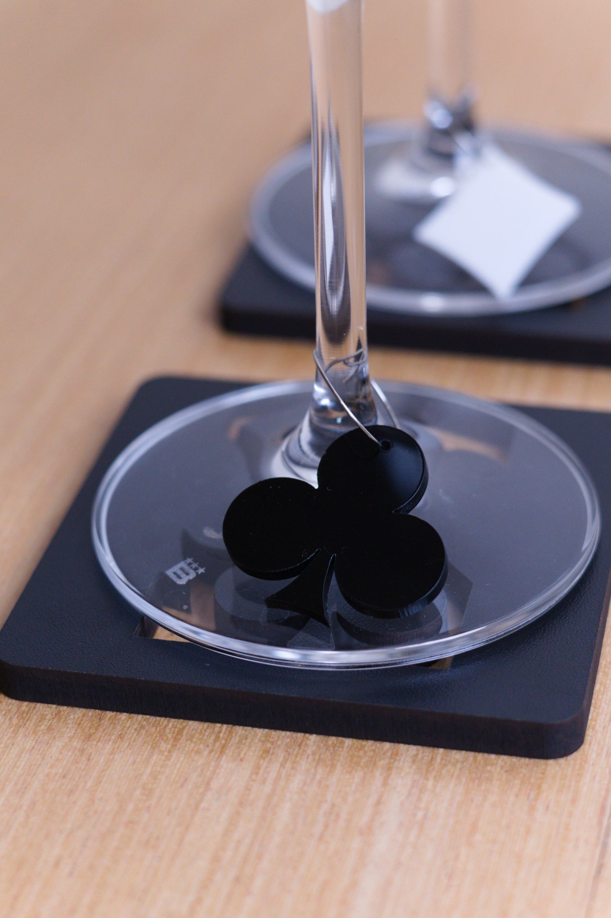 O kit de marca-taças em acrílico é composto por 4 peças — cada uma representando um dos naipes do baralho: ouros, copas, paus e espadas. Um detalhe lúdico e funcional para deixar seus encontros ainda mais especiais.