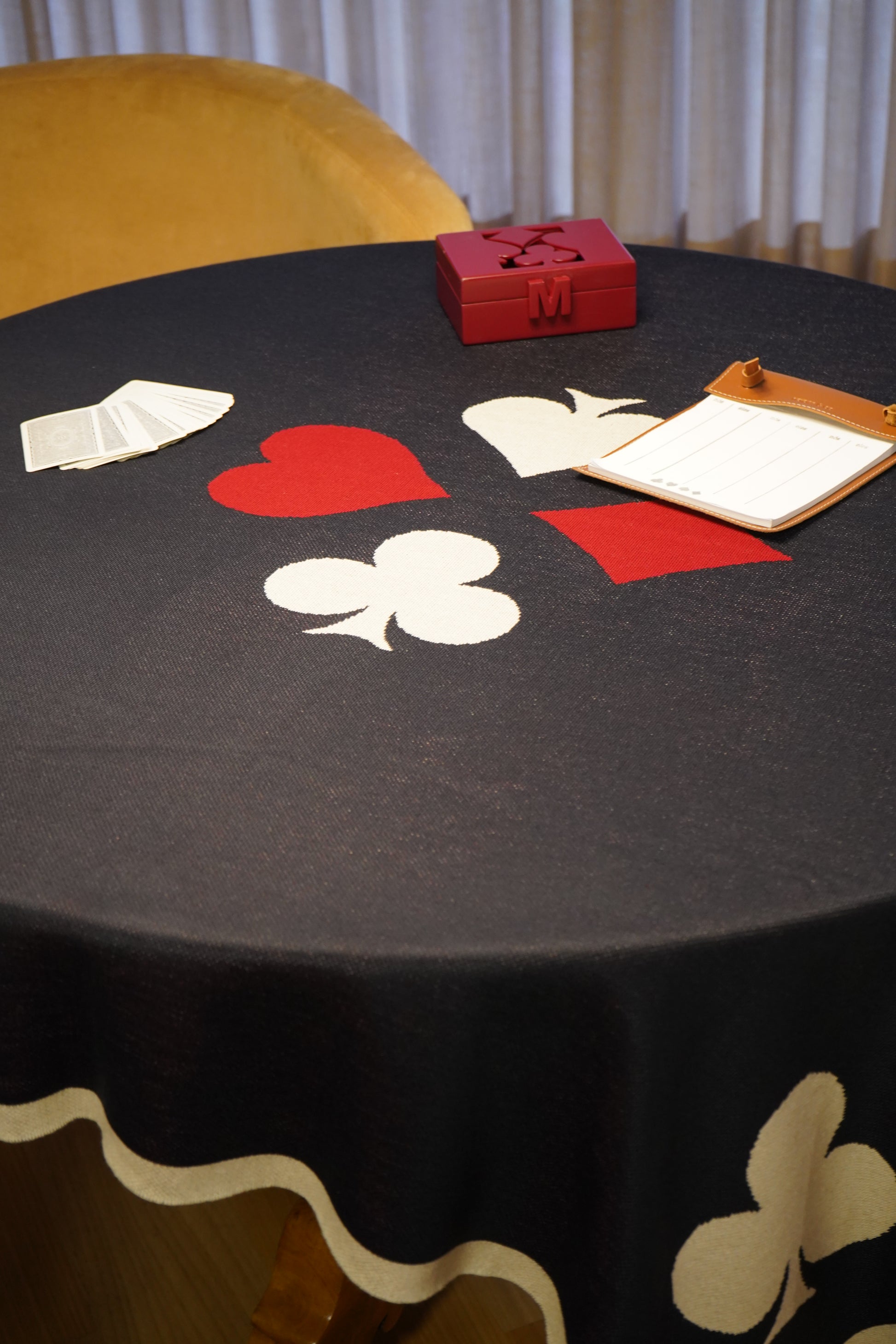 Com inspiração náutica e toque de sofisticação, a Toalha de jogos Gift Navy tem naipes no centro e nas pontas e ganha destaque com sua faixa off-white em contraste elegante.