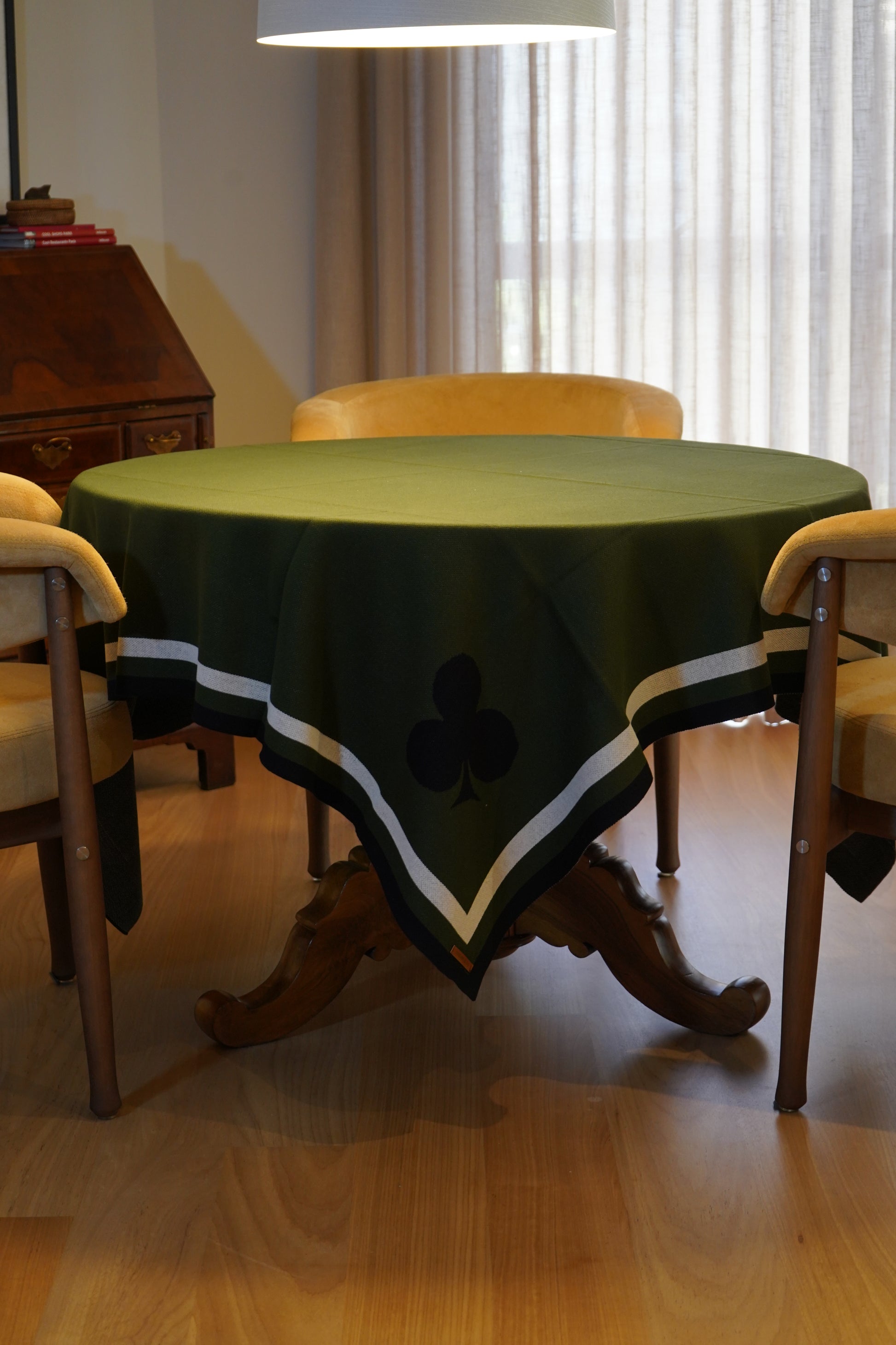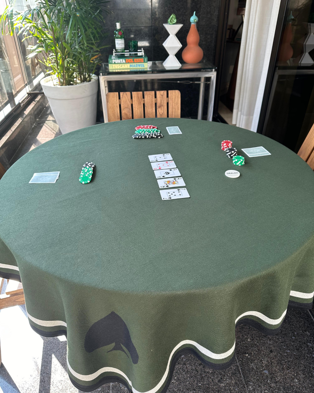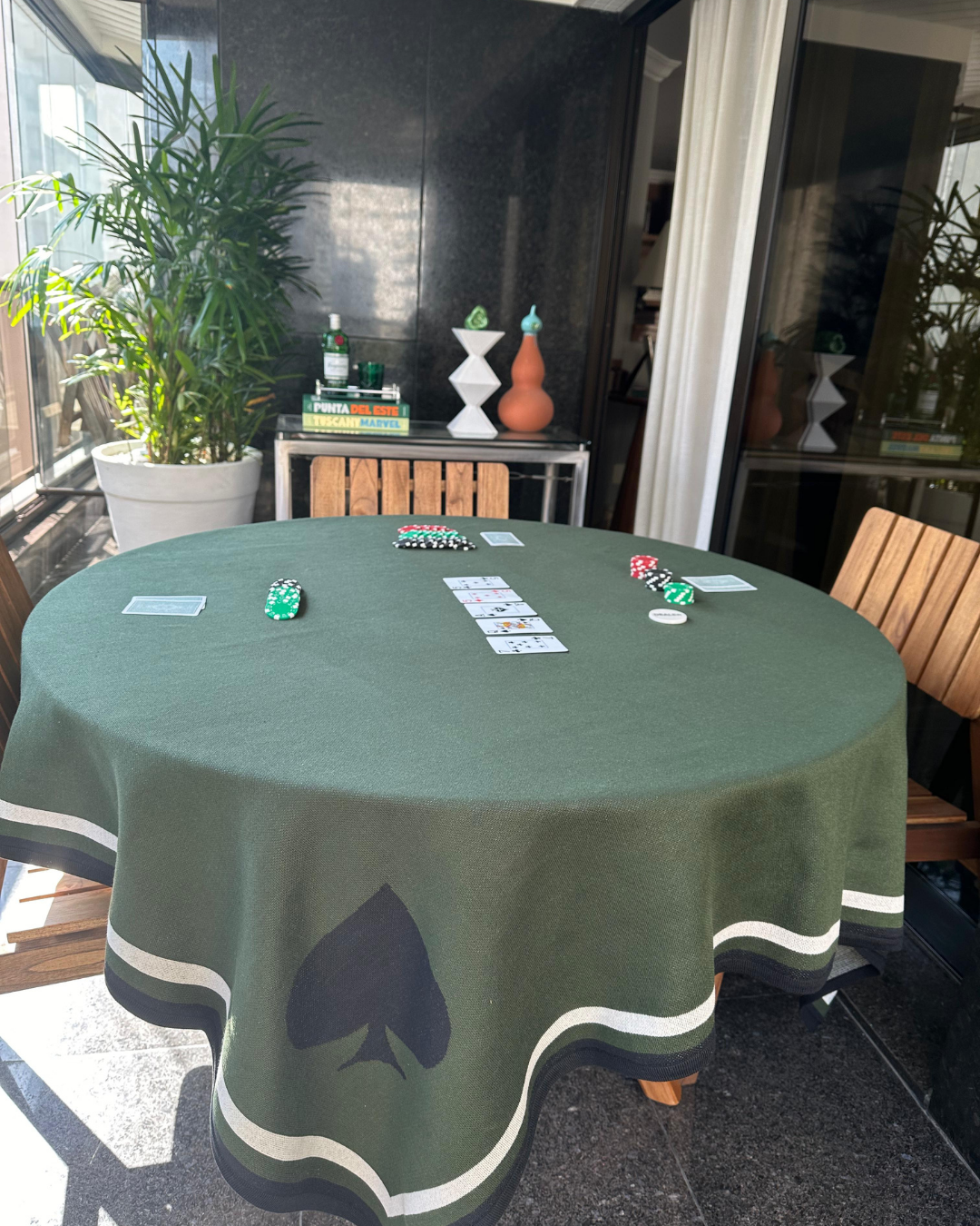 A toalha Joy é a escolha perfeita para quem gosta de uma partida limpa e organizada. Com naipes discretos nas pontas e um centro livre de elementos gráficos, ela foi projetada pensando nos jogos que utilizam o centro da mesa, como poker, gamão, scrabble e dominó. Ideal para quem busca simplicidade e funcionalidade, essa toalha é versátil e elegante.
