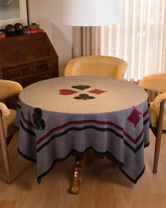 O tamanho generoso de 160x160 cm cobre bem a mesa, proporcionando o deslize ideal para o carteado e um visual imponente. Uma peça que eleva o ritual do jogo a um novo patamar.