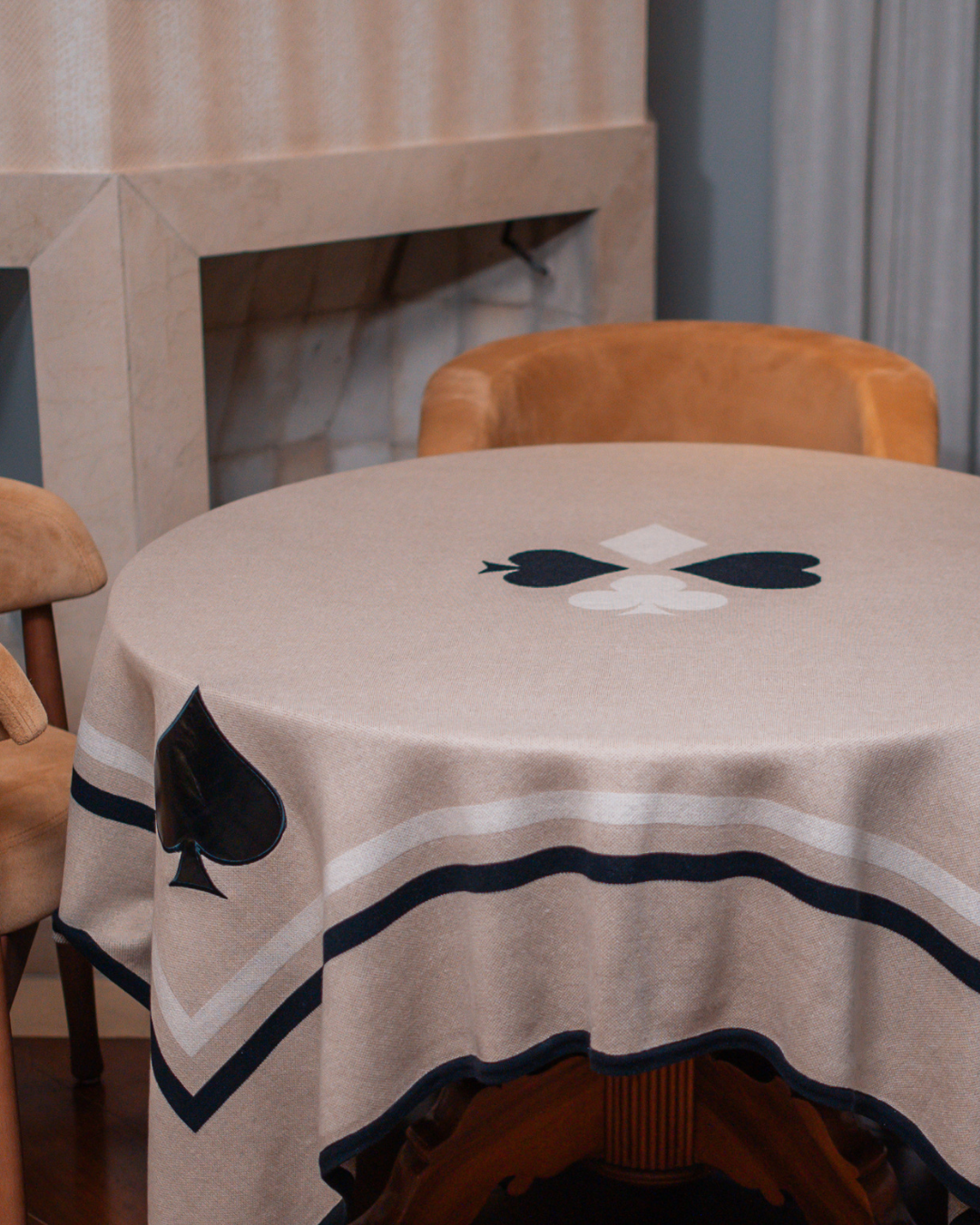 Com desenho de naipes no centro, cercado por listras elegantes e finalizado com naipes aplicados em couro legítimo nas pontas, a Toalha Concept é uma escolha de impacto para quem valoriza tanto o jogo quanto o ambiente. O toque do couro traz textura e exclusividade, enquanto o tricot com fibras naturais garante conforto, resistência e caimento impecável.